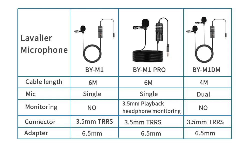BOYA BY-M1DM 4m microfone lapela lapela de cabeça dupla com conector estéreo de 1/8 “para câmera dslr dispositivo ios entrevista ao vivo